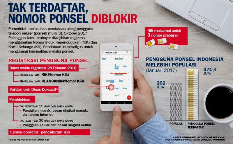 Kebijakan pendataan dilakukan Pemerintah terhadap pengguna telepon seluler (ponsel) mulai 31 Oktober 2017. Supaya tidak diblokir, pelanggan harus memasukkan  Nomor Induk Kependudukan (NIK) dan Kartu Keluarga (KK)