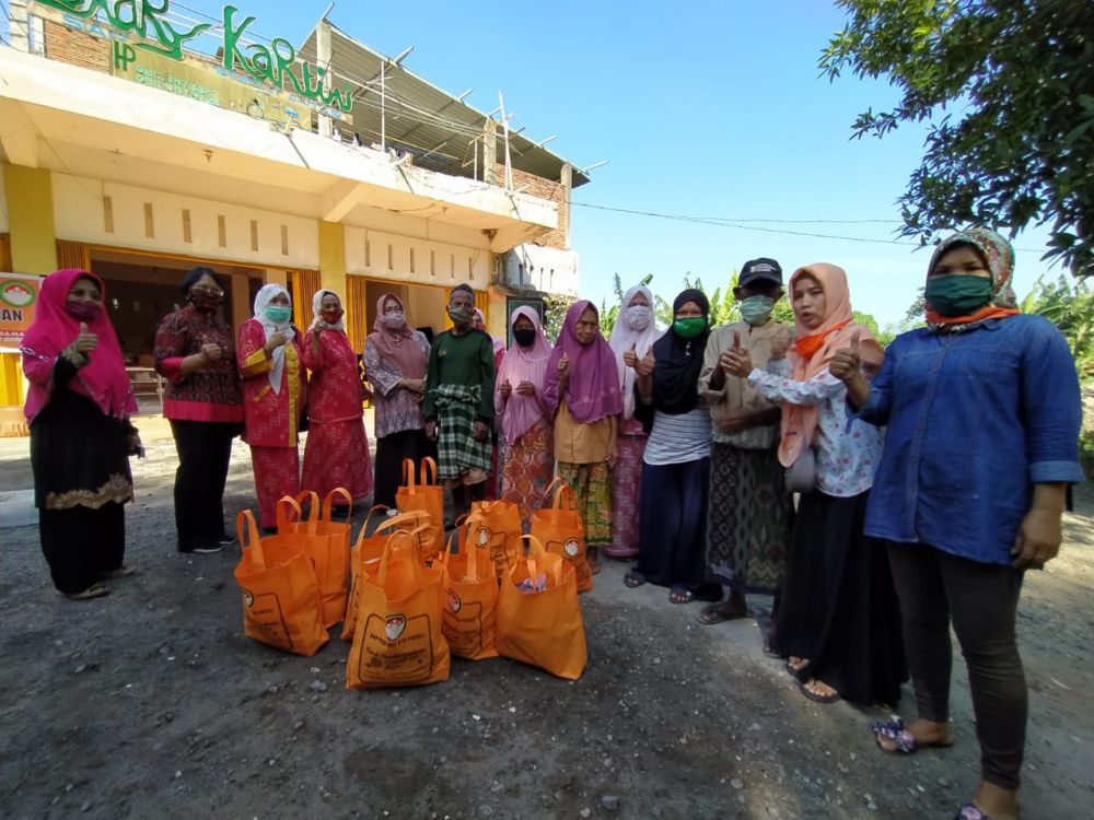 Satu paket bantuan sosial non JPS dari Dharma Wanita, berisi telur ayam 10 butir, minyak kelapa 2 liter, ikan asin, sabun dan beras 5kg.