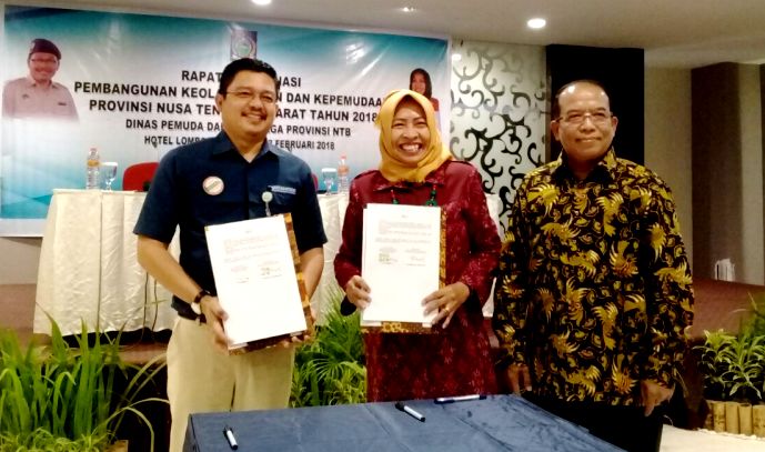 Dinas Pemuda dan Olahraga (Dispora ) NTB melakukan penandatangan kerjasama dengan BPJS Kesehatan Cabang Mataram, terkait pendaftaran peserta bagi atlet pelajar PPLP yang dimasukan ke BPJS Kesehatan, di Hotel Lombok Plaza di Mataram, Kamis (22/02). (Foto: AYA/Lombok Journal)