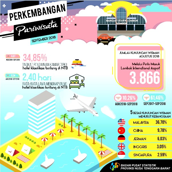 MATARAM,lombokjournal.com —Tingkat Penghunian Kamar (TPK) hotel bintang pada bulan September 2018 mengalami kenaikan dibandingkan bulan Agustus 2018.