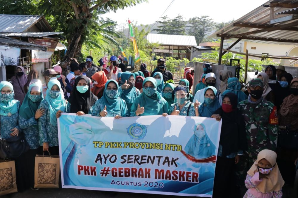Bunda Niken bersama PKK Kabupaten Lombok Barat, Sabtu (15/08/20), melakukan kegiatan'Gebrak Masker'di Desa Lembar Kabupaten Lombok Barat (Foto; HmsNTB)