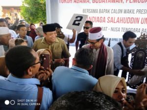 MATARAM ; Kunjungan Cawapres Nomor Urut 02 Sandiaga Uno ke Pulau Lombok, hari Selasa (09/04) dipastikan makin memperkuat dukungan masyarakat NTB untuk kemenangan pasangan capres 02, Prabowo – Sandi di Pilpres tanggal 17 April.