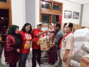 Ketiga Lembaga tersebut mendatangi para korban gempa guna menyerahkan sejumlah sumbangan seperti biskuit , terpal , susu bayi, pempers , pembalut wanita , nasi bungkus , dan lain-lain..