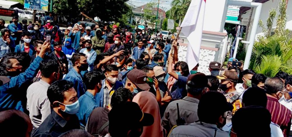Aksi itu untuk menyampaikan tuntutan agar wakil rakyat Udayana melayangkan surat gugatan ke Pemerintah Pusat, untuk menolak Omnibus law Rancangan Undang-Undang (RUU) Cipta Kerja.
