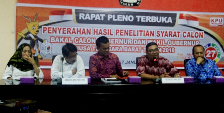 Komisi Pemilihan Umum Daerah (KPUD) Nusa Tenggara Barat (NTB) mengumumkan hasil pemeriksaan kesehatan Bapaslon Gubernur dan Wakil Gubernur NTB, Rabu (17/01).