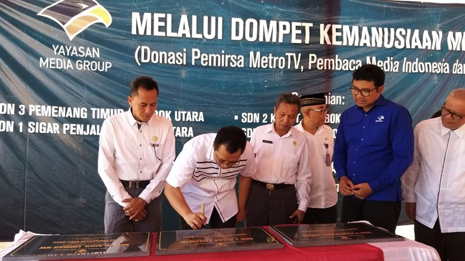 Gubernur mengucapkan terima kasih kepada Tim Media Grup yang telah membantu membangun sekolah dan fasilitas kesehatan di KLU, Lobar, Lotim dan di daerah lain yang terkena bencana.