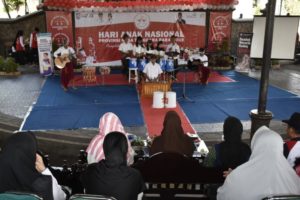 “Ini adalah hari untuk kalian, kita hari ini meperingati hari anak nasional, seyogyanya anak selalu senang menikmati hari-harinya, dinikmati untuk sekolah, jangan dianggap sekolah sesuatu yang membuat kita capek dan stres,” ungkap Wagub.