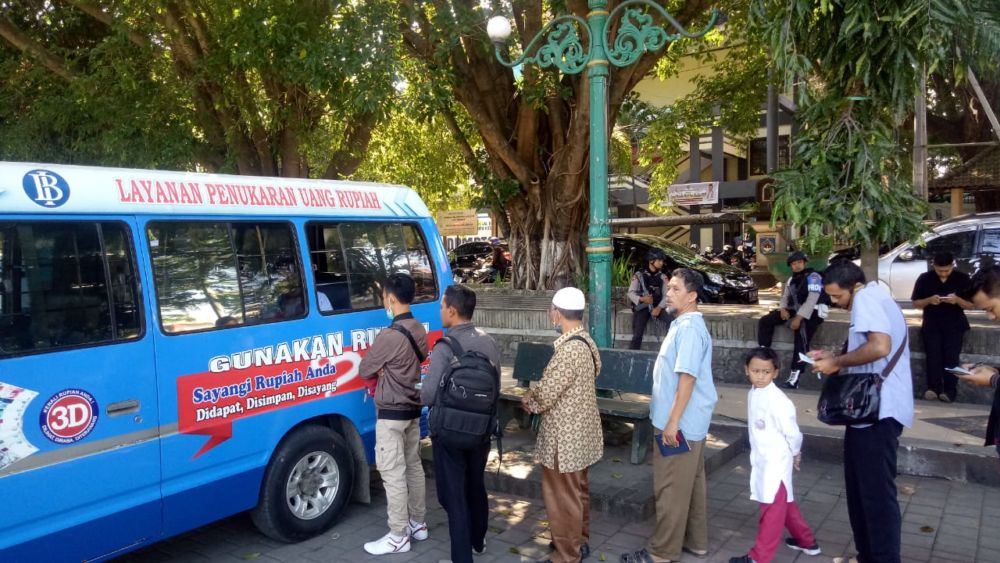 Untuk melayani kebutuhan masyarakat, pihak Bank Indonesia) melakukan penukaran uang di mobil operasional Bank Indonesia (BI), di hari pertama hanya membawa 750 juta. Jumlah ini untuk meraba-raba berapa banyak uang yang dibutuhkan di waktu berikutnya.