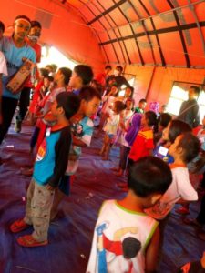 Tim jelajah Lombok bersama relawan melakukan play teraphy dengan berbagai bentuk kegiatan, misalnya bernyanyi bersama, menggambar , fun games, lomba lomba dan kegiatan menyenangkan lainya
