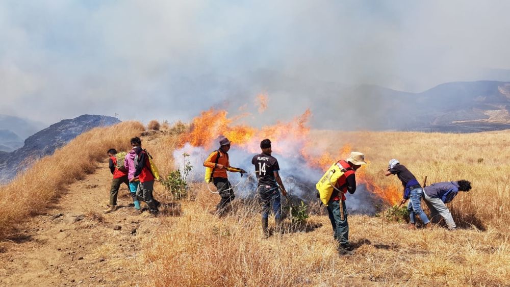 Proses pemadam terkendala minimnya alat pemadam yang bisa dibawa ke atas gunung
