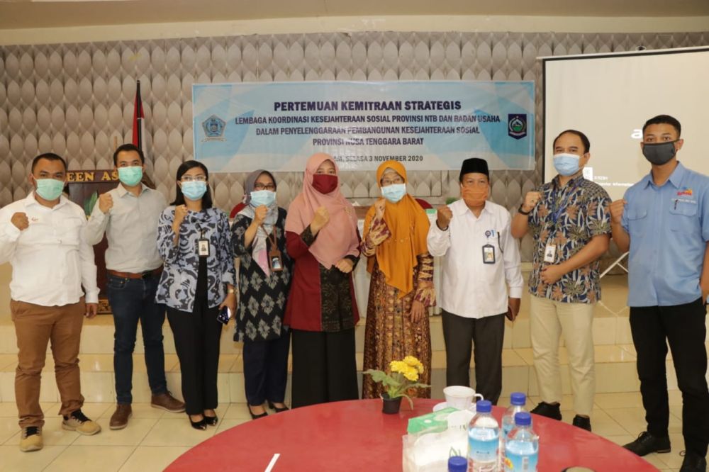 Lembaga Koordinasi Kesejahteraan Sosial (LKKS) Provinsi NTB menggelar pertemuan kemitraan strategis bersama Badan Usaha dalam penyelenggaraan pembangunan kesejahteraan sosial Provinsi NTB. di Green Asri, Sayang Sayang, Selasa (03/11/20).