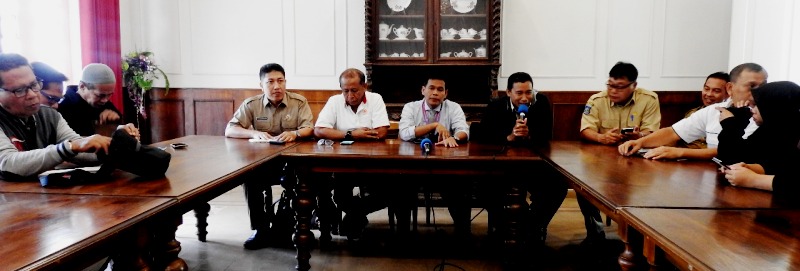 Ketua KONI Andy Hadianto dan Kadispar Lalu Moh Faozal saat acara konferensi pers terkkait insiden itu di Rumah Langko, Senin (29/1).(Foto: AYA/Lombok Journal)