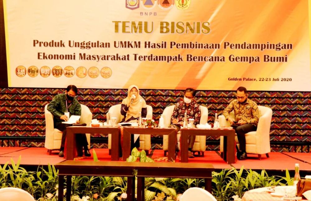 MATARAM.lombokjournal.com — Puluhan kelompok UMKM yang terdampak bencana gempa bumi di NTB tahun 2018 mengikuti acara ” Temu Bisnis Produk Unggulan UMKM Hasil Pembinaan Pendampingan Ekonomi Masyarakat Terdampak Bencana Gempa Bumi” yang berlangsung di Hotel Golden Palace, Kamis (23/07/20).
