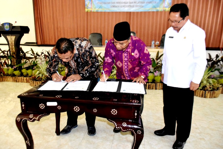 Pada kesempatan itu, Wagub dan Kepala LAN menandatangani kesepakatan bersama antara Pemerintah Provinsi NTB dan Lembaga Administrasi Negara, tentang penguatan kapasitas Pemerintah Provinsi NTB melalui penyelenggaraan kegiatan, kajian, kebijakan, pelatihan, dan pengembangan kompetensi, inovasi administrasi negara serta pendidikan tinggi, yang disaksikan oleh Sekda Prov. NTB Ir.H. Rosyadi H. Sayuti, M.Sc, Ph.D