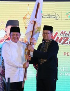Selain itu, Doktor Zul menyerahkan bendera pataka PTQ kepada Gubernur Sumatera Selatan, Herman Deru, selaku tuan rumah kegiatan 2020 mendatang.
