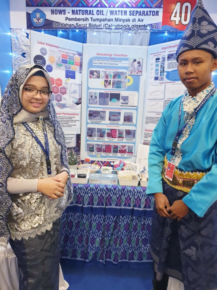 Pencapaian dua pelajar SMA 1 Sumbawa ini dimulai dari pengajuan proposal penelitian di bulan April 2019. Keduanya mengusung penelitian berjudul “NOWS (Natural Oil/Water Separator), pembersih tumpahan minyak di air berbahan serat biduri (Calostropis gigantea L)”.