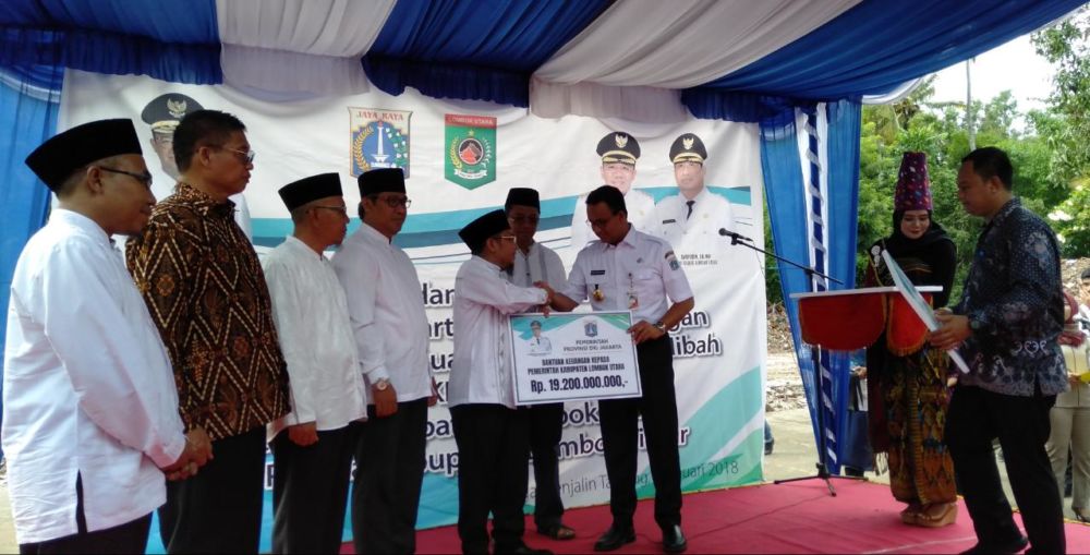 LOMBOK UTARA.lombokjournal.com — Gubernur DKI Jakarta Anies Baswedan menyerahkan bantuan puluhan miliar untuk pembangunan hunian sementara (huntara) dan sekolah.