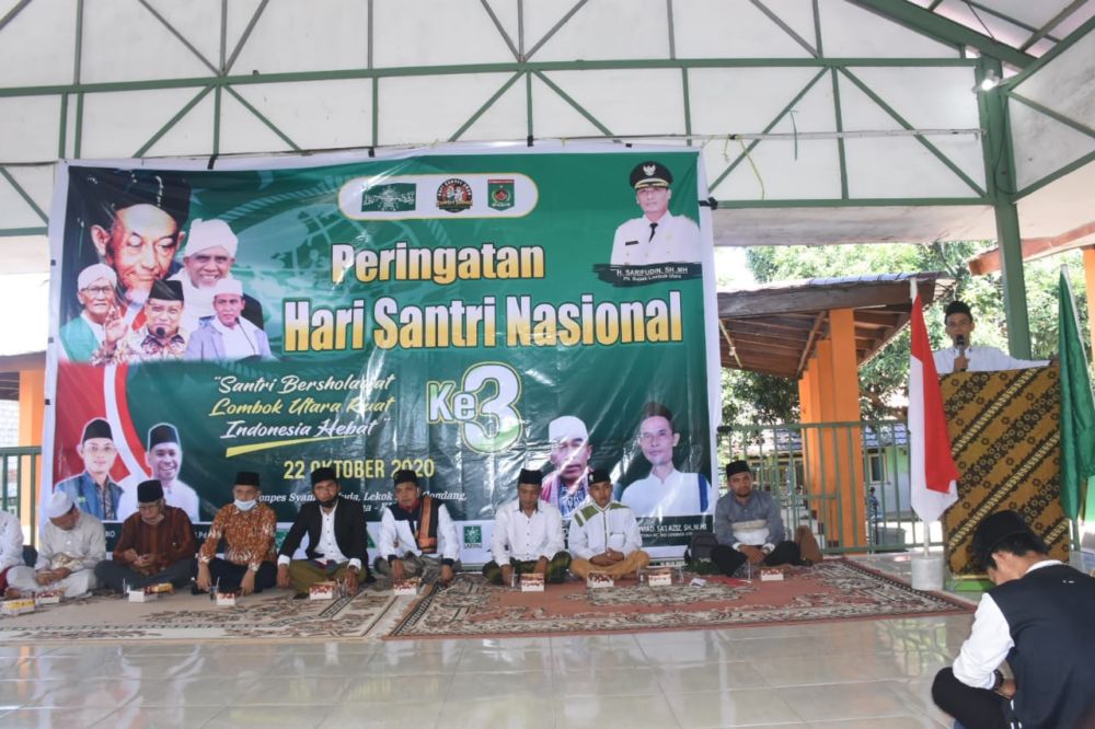 Dalam peringatan Hari Santri itu Hadir Ketua Komisi 3 DPRD KLU Artadi, S.Sos, Ketua Baznas H. Sueb Yusup MMPd serta pengurus PCNU KLU. Kegiatan yang diselenggarakan oleh Pengurus Nahdatul Ulama itu berlangsung meriah dengan mematuhi protokol kesehatan Covid-19.