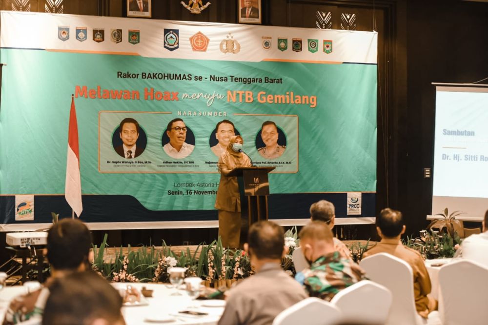 Wakil Gubernur NTB, Dr. Hj. Sitti Rohmi Djalilah yang membuka Rakor Bakohumas se-NTB mengajak seluruh elemen bersatu menangkal hoaks.