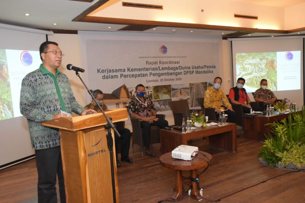 Gubernur NTB, Dr. H. Zulkieflimansyah, SE., M. Sc didampingi Asisten Bidang Perekonomian, membuka acara Rapat Koordinasi (Rakor ) Kerjasama Kementerian/Lembaga/dunia usaha, Pemda dan percepatan Destinasi Pariwisata Super Prioritas (DPSP) Mandalika di Novotel, Lombok Tengah, Kamis (22/10/20).