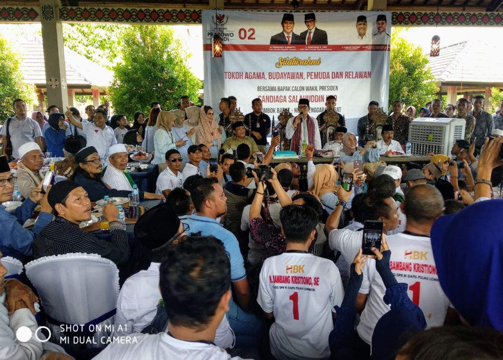 LOMBOK BARAT ; Ratusan tokoh multi etnis di Nusa Tenggara Barat (NTB), bersilaturahmi dengan Calon Wakil Presiden Nomor Urut 02, Sandiaga Salahuddin Uno.