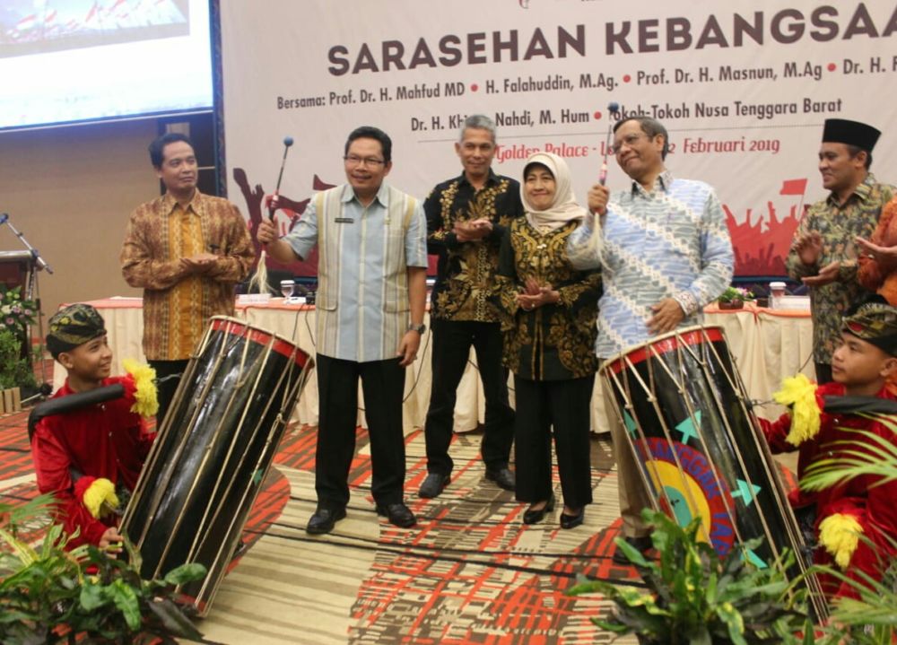 Senada dengan Sekda NTB, saat itu Ketua Gerakan Suluh Kebangsaan Prof. Mahfud MD mengatakan dalam sambutannya, acara diskusi ini mengajak seluruh peserta yang hadir dan masyarakat pada umumnya untuk menjaga kondusifitas dan menjadi pelopor pemilu damai.