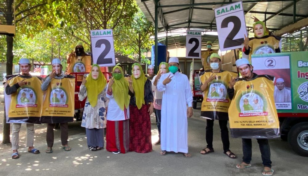 “Gerakan Tim SALAM ini menggunakan 15 unit roda tiga ke semua titik kawasan di enam kecamatan . Selain mengedukasi dan sosialisasi tentang pencegahan Covid-19, SALAM juga membagikan ribuan masker dan handsanitizer,” kata Calon Walikota Mataram, Hj Putu Selly Andayani, Sabtu (26/09)