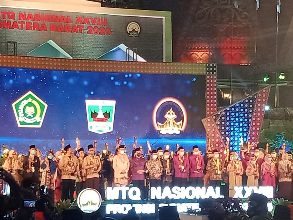 Hasil itu diumumkan dalam rangkaian penutupan MTQ Nasional di Masjid Raya Sumbar.
