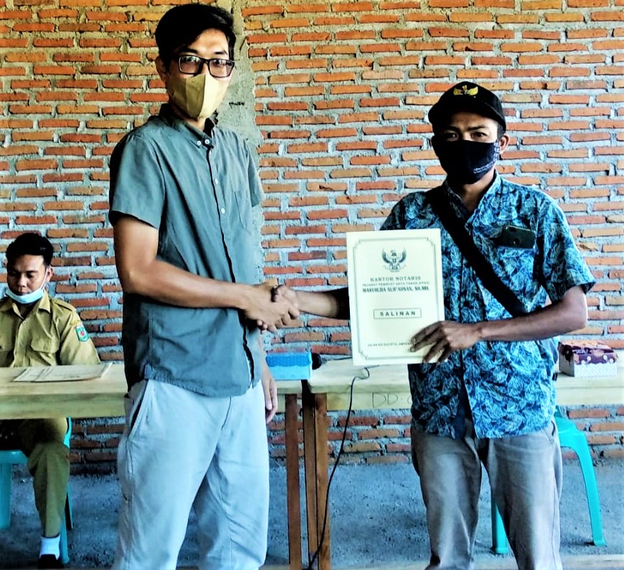 Serah terima akta notaris kepada beberapa pengurus TPQ di Kabupaten Lombok Utara itu digelar Karang Karuna Desa Dangiang, Selasa (06/07/21).