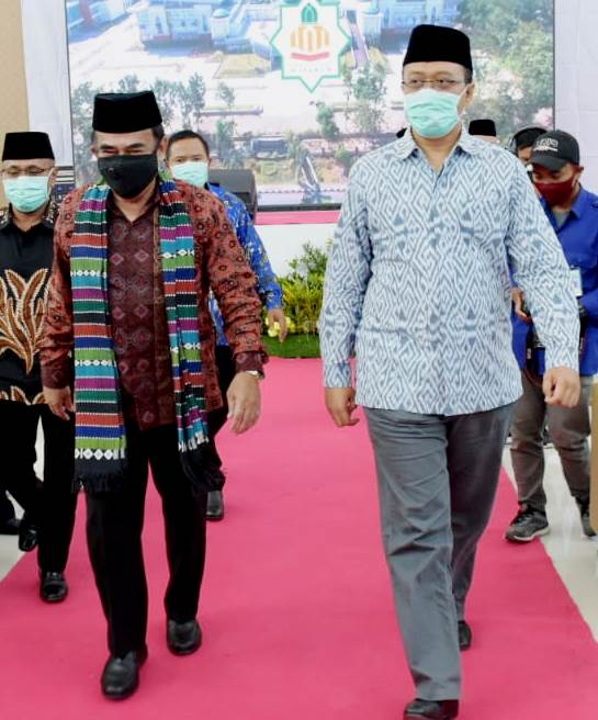 Menteri Agama, Fahrul Razi (KIRI) bersama Gubernur Zulkieflimansyah, menjelang peresmian gedung baru Universitas Islam Negeri (UIN) Mataram, 17 September lalu /Foto; HmsNTB