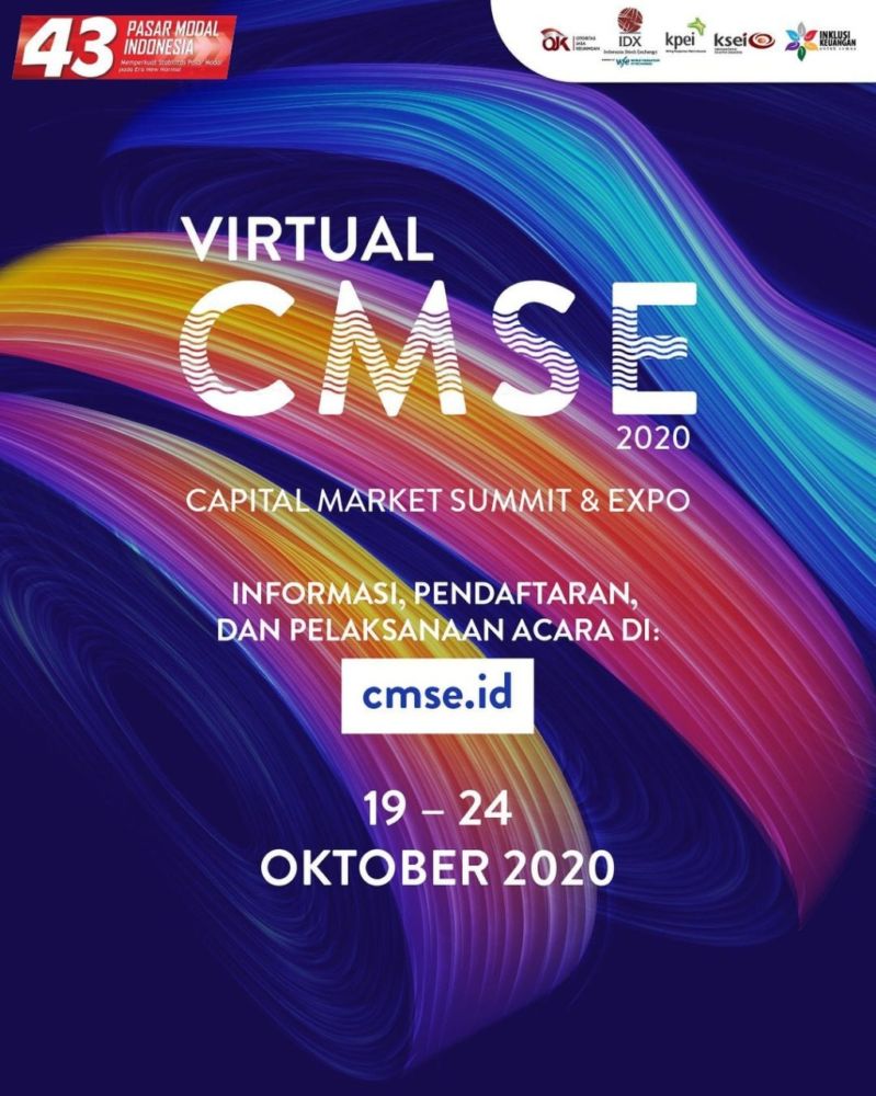 JAKARTA ;  Otoritas Jasa Keuangan (OJK) bersama PT Bursa Efek Indonesia (BEI), PT Kustodian Sentral Efek Indonesia (KSEI), dan PT Kliring Penjaminan Efek Indonesia (KPEI), menyelenggarakan acara Capital Market Summit & Expo (CMSE) 2020 secara virtual, Senin (19/10) hingga Sabtu (24/10/20).